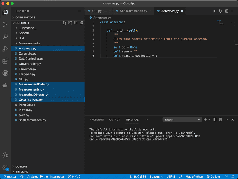 För att kunna styra de olika enheterna, spara ner och initiera nya mätningar krävs en kontrollapplikation som kan köras från en dator. Detta program ska även kunna visualisera pågående mätning i någon form. Dels för att operatören ska se att allt fortskrider som det ska och dels för eventuella åskådare ska kunna följa mätningen i realtid. Kontrollapplikationen behöver utvecklas från scratch och ska vara skriven i programmeringsspråket Python.